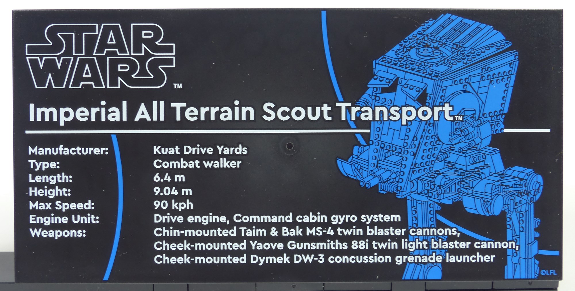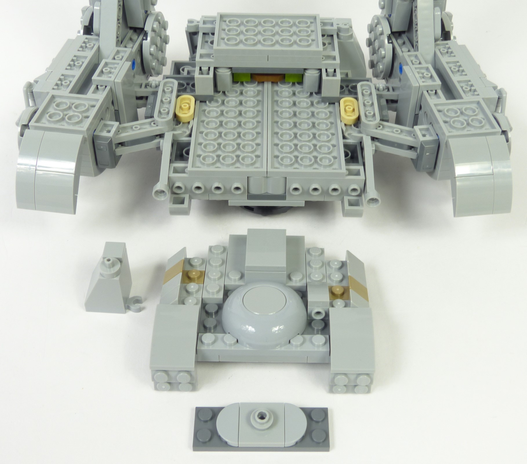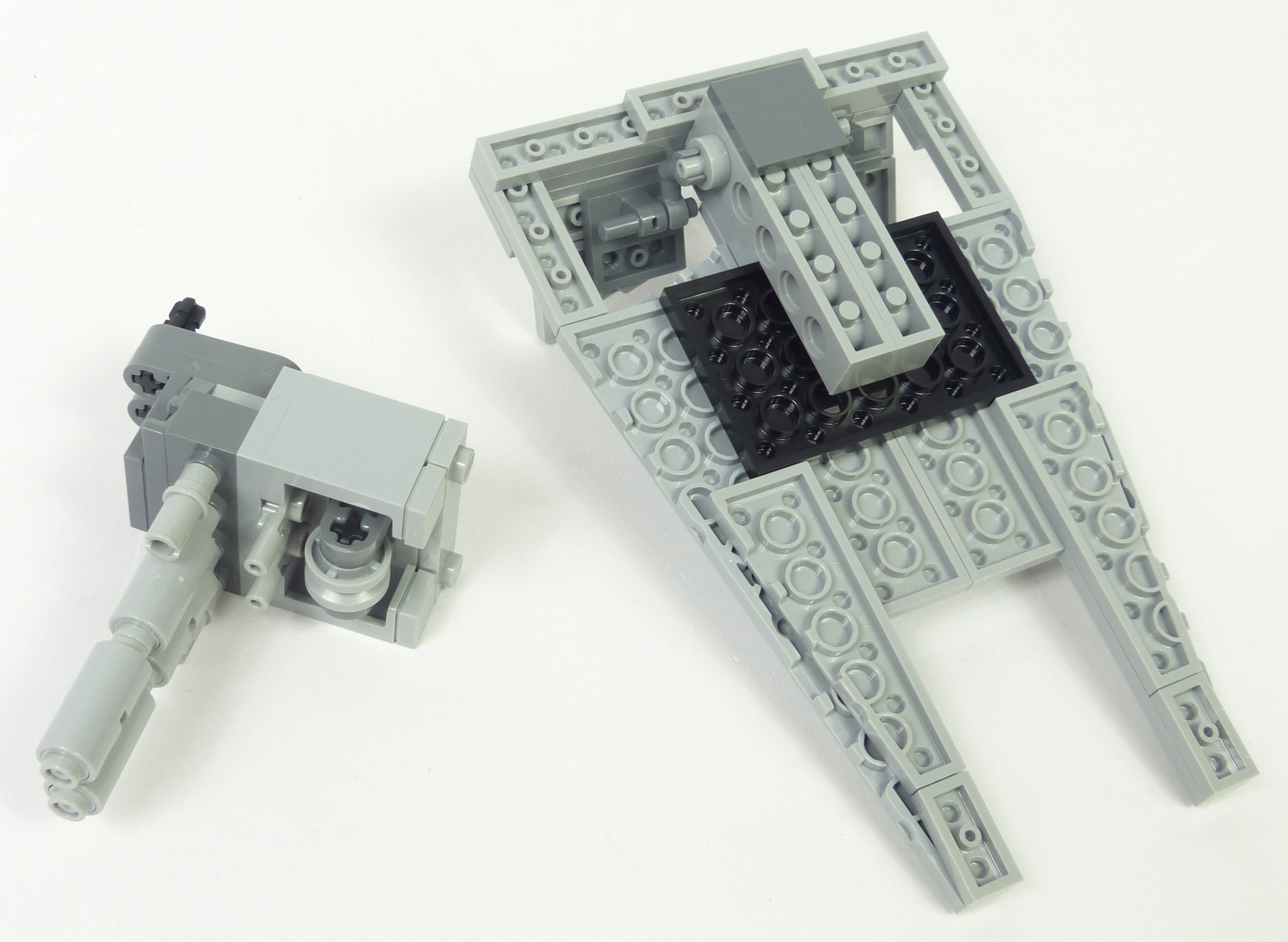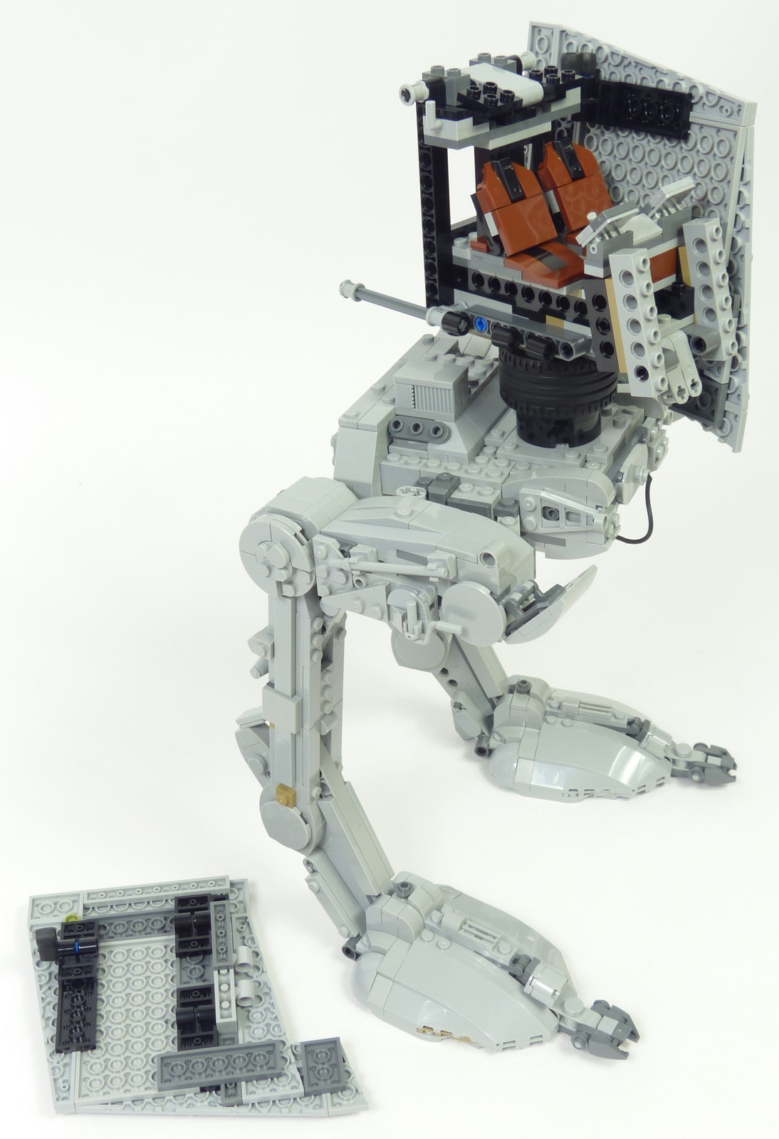 Il faut compter environ 3 heures pour construire cet AT-ST. Le montage offre des techniques intéressantes sans non plus être monstrueusement compliquées. L'ensemble jouit d'une conception qui n'est pas aussi modulaire qu'on pourrait le penser. Concrètement, les pattes et le châssis ne forment qu'un seul et même bloc. Cela est assez étonnant, notamment par rapport à la mouture #10174 de 2006. Le modèle se décompose en 11 modules : le bloc des pattes, la structure de la tête, 5 panneaux pour la tête, 3 armes, et le présentoir.