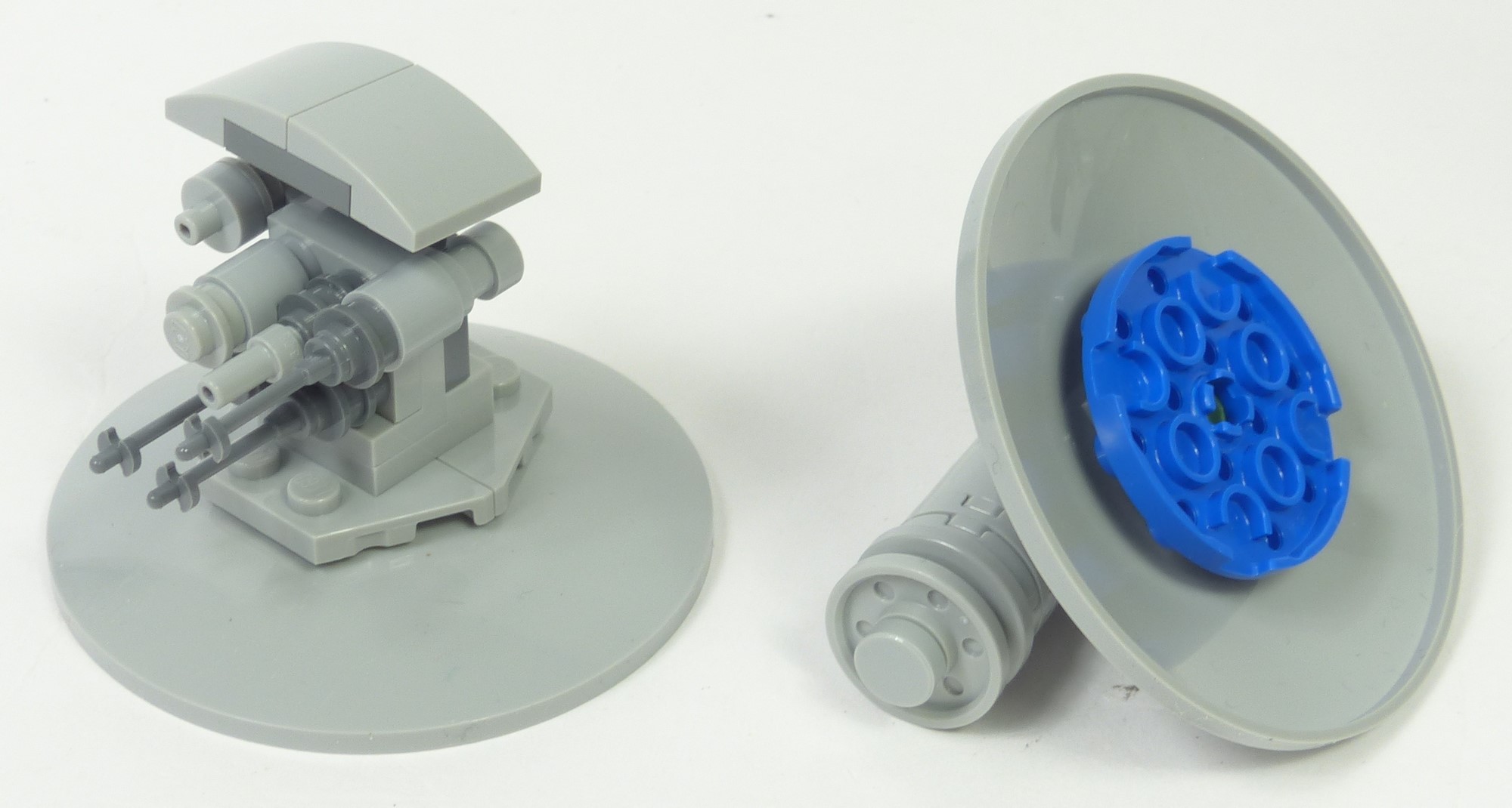 Le canon principal est monté sur la structure à l'aide de pièces Technic. Quant aux blindages avant et arrière, ils utilisent les tenons mis en place lors de la construction de la structure de la tête. Simple et solide à la fois ! La fin de la construction est tout aussi convenue. On accroche le panneau supérieur avec quelques tenons, on connecte les armements latéraux aux turntables, et on conclut avec le présentoir.